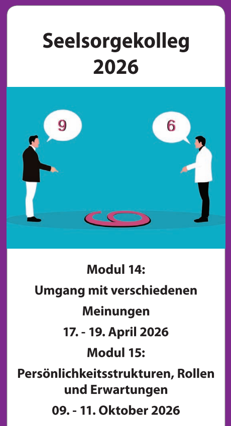 Ein Angebot für alle, die im Gemeindekontext Menschen seelsorgerlich begleiten und Grundkenntnisse in Seelsorge haben. Zu den ausgewählten Themen lernen wir Theorie und Praxis in wertvoller und wertschätzender Atmosphäre.